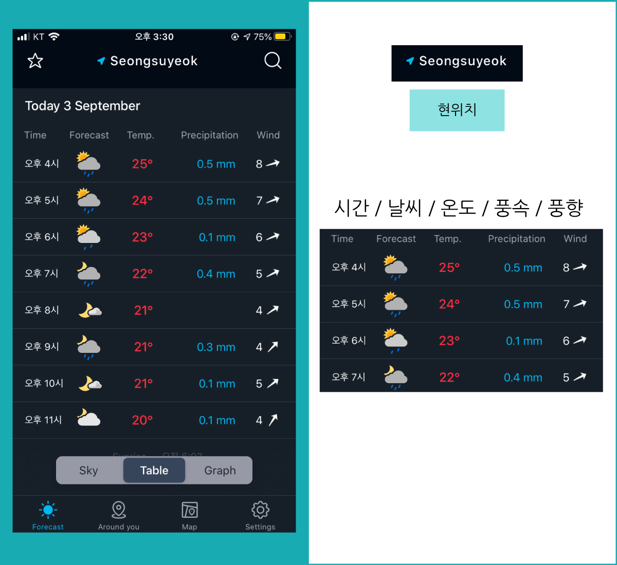 표로 날씨 보기 - Table